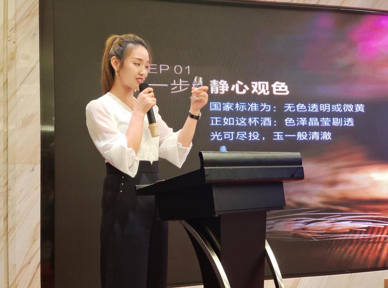 廣西翠屏酒業(yè)的文化講解員吳齊煥從原料、釀造工藝、包裝設(shè)計(jì)等角度講述了經(jīng)典五糧液“熔鑄時(shí)光,釀造經(jīng)典”的光陰故事,帶領(lǐng)現(xiàn)場(chǎng)嘉賓依照“靜心觀色”、“平心聞香”、“沉心品味”、“禪心悟格”四步驟全方位感受經(jīng)典五糧液的風(fēng)格與魅力。