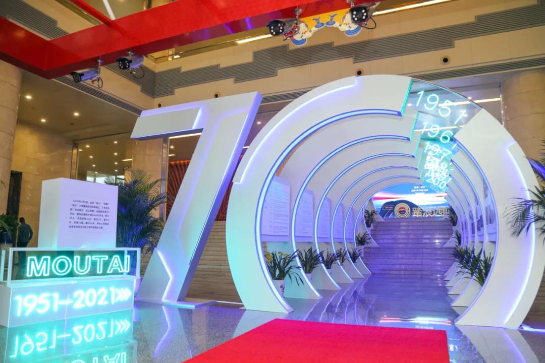“70”字樣的拱門展示了茅臺70年來的生產(chǎn)質量大事件